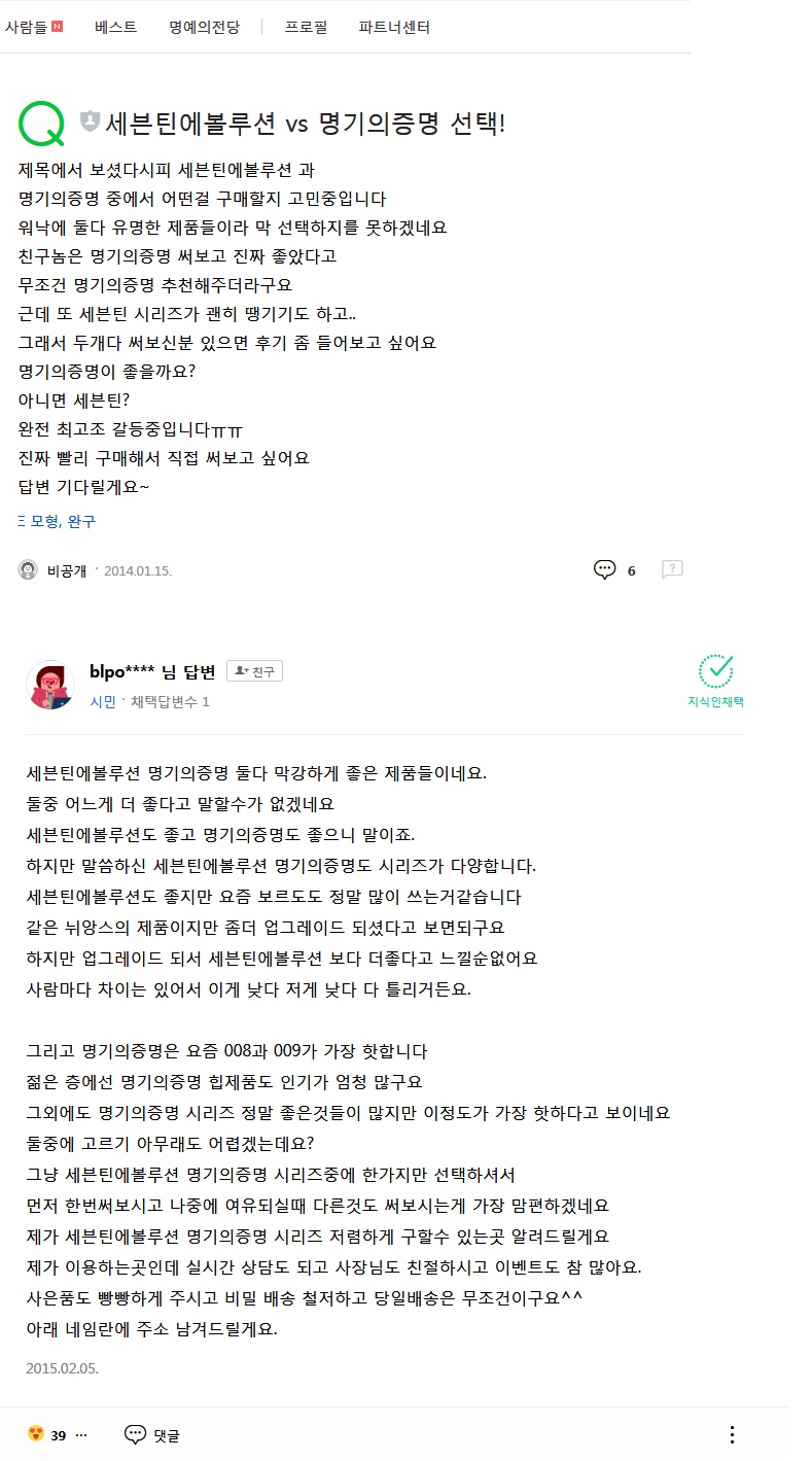 명기의증명 vs 세븐틴에볼루션 2015년 지식인 추천후기 (4) |
